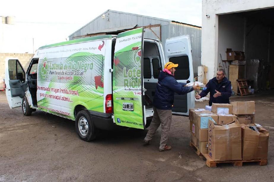 El interventor de Lotería de Río Negro, Luis Ayestarán, firmó hoy el expediente de entrega de 400 kilogramos, entre papel y tapitas, a la Fundación Garraham.